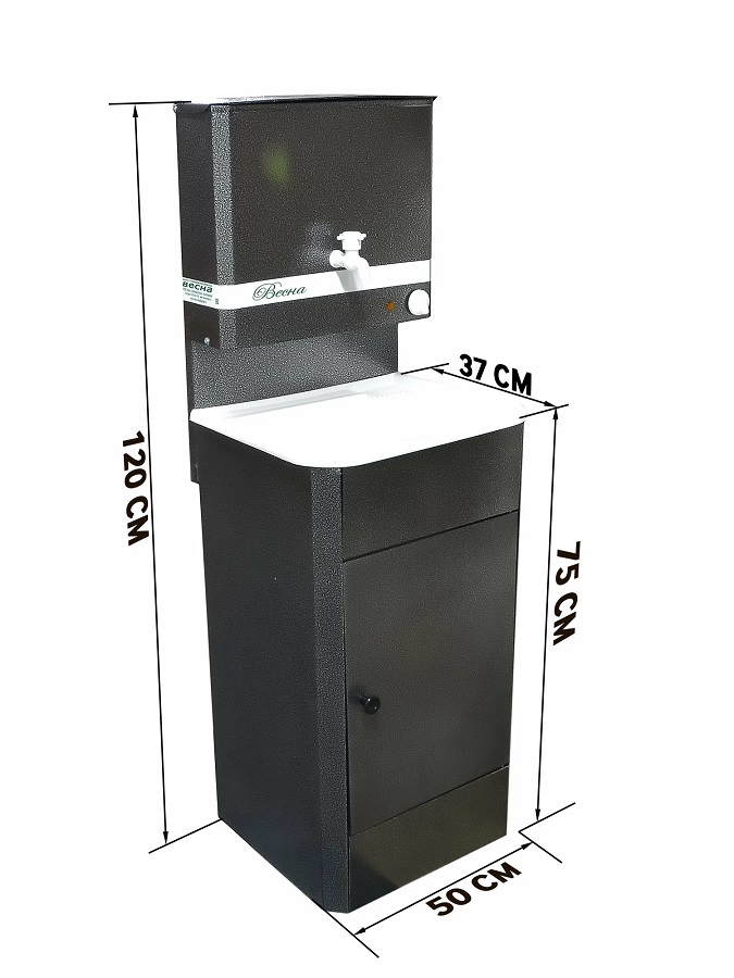 Дачный умывальник с подогревом Весна поможет вам облегчить дачную жизнь, где нет проведенного водоснабжения, благодаря нему умываться и мыть руки, посуду, теперь можно теплой водой и с полным комфортом. Также будет отличным решением для гаража, беседки, сада, подсобных помещений.