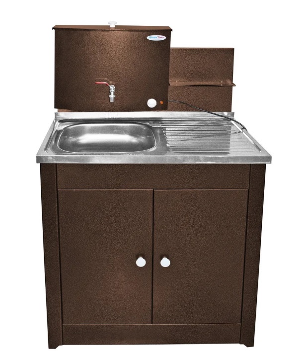 Состоит из: Тумбы-стойки, водонагревателя с гальвоническим покрытием, мойки из нержавейки, крана шарового.