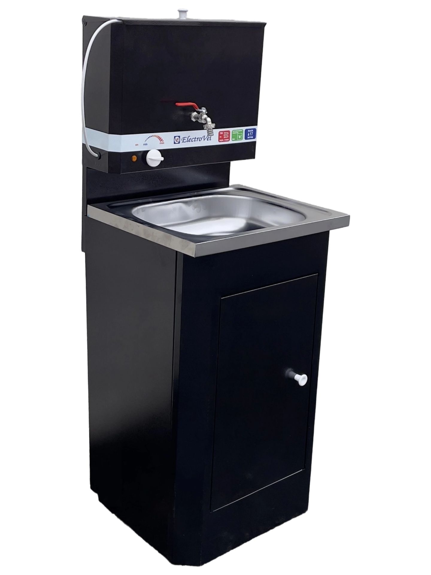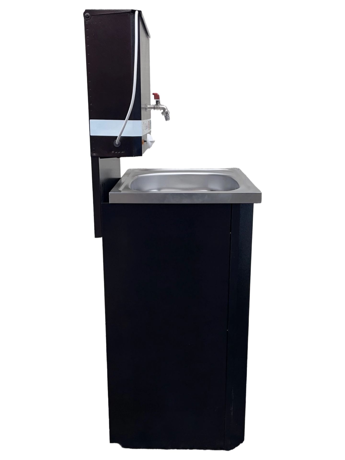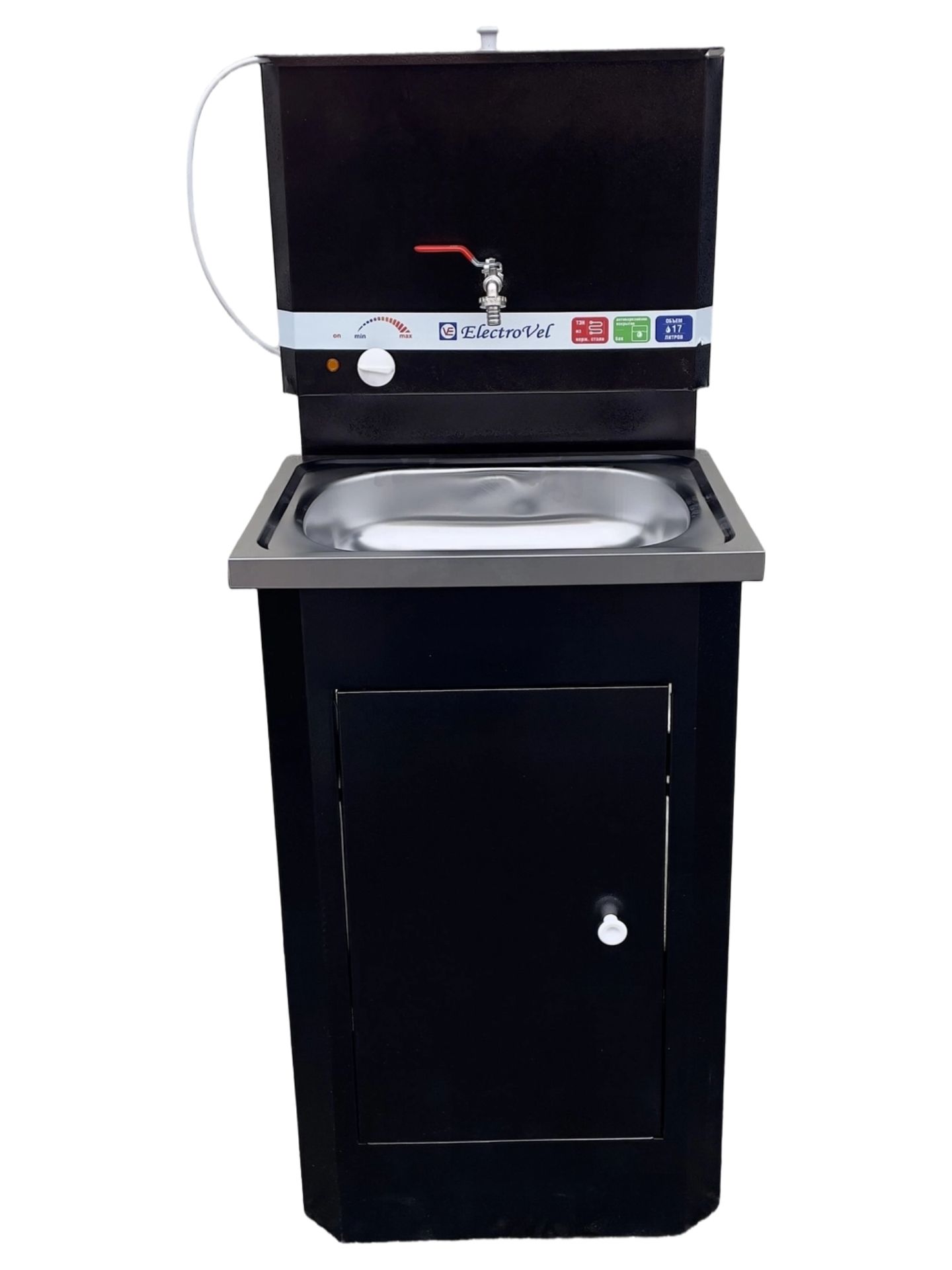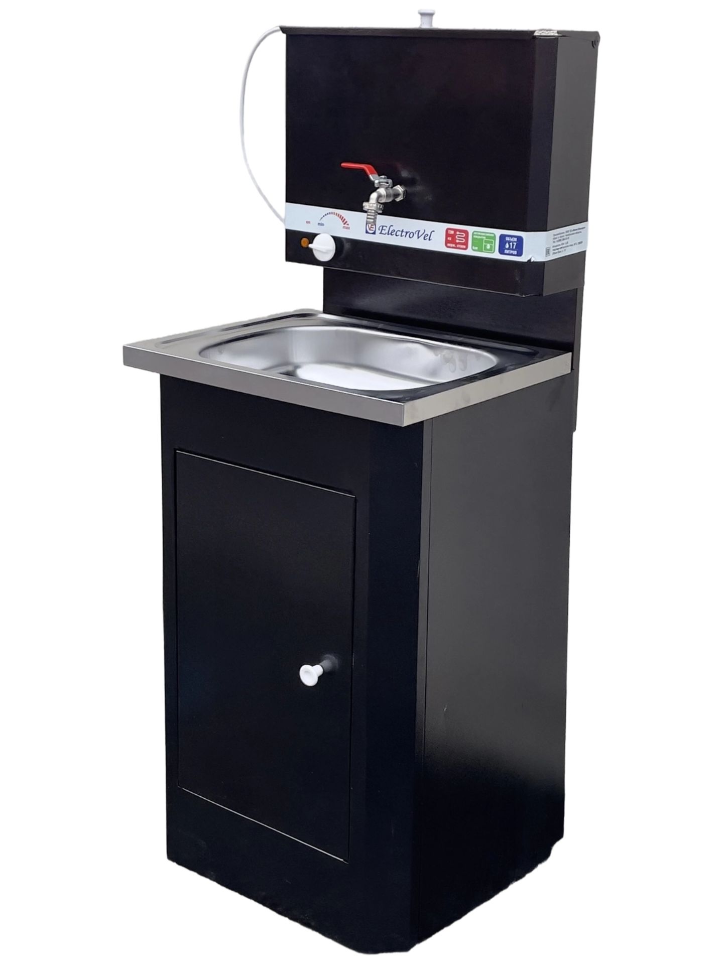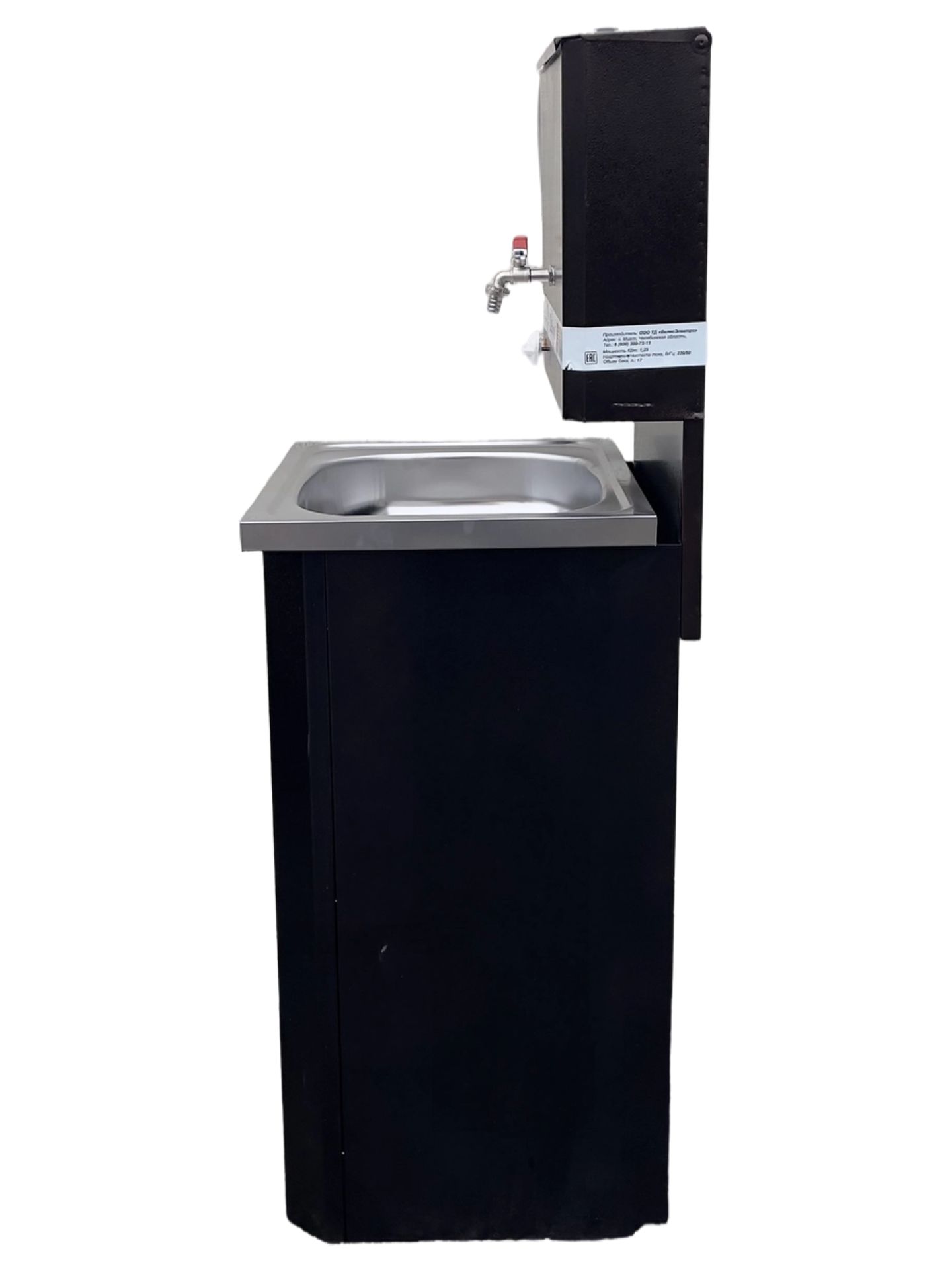 Конструкция умывальник сборная, состоит из тумбы, которая незаметно скрывает способ отлива воды и позволяет производить отвод воды даже в канализацию, и бака с металлическим шаровым краном, ТЭН.