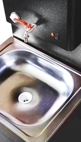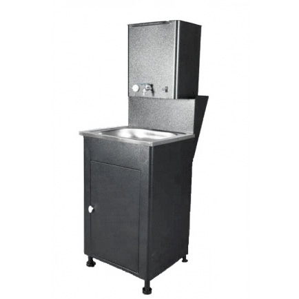Конструкция умывальник сборная, состоит из тумбы, которая незаметно скрывает способ отлива воды и позволяет производить отвод воды даже в канализацию, и бака с пластиковым шаровым краном, ТЭН.